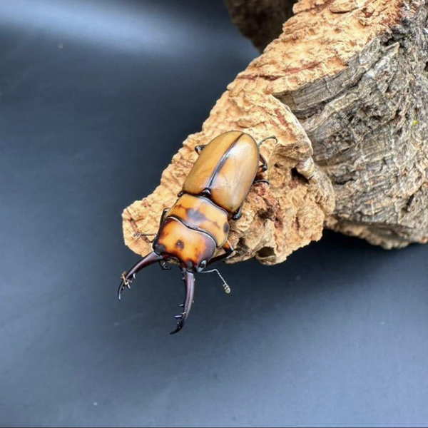 写真は代表個体となります。(♂33.8mm ♀FREE)極端に小さな個体は羽化しておりません。お送りする個体は、写真と同等ほどのサイズとなります。 ブルイジンノコギリの中でも希少な亜種かと思います。WDの入荷は久しく無いと思われます。 |